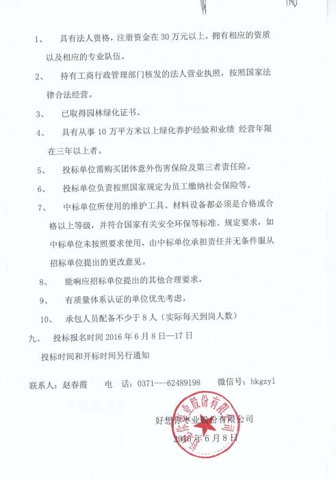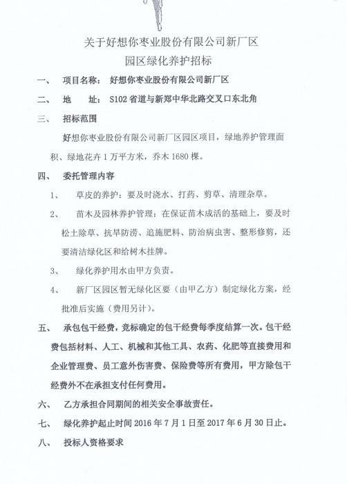 关于开宝体育官网枣业股份有限公司新厂区园区绿化养护招标