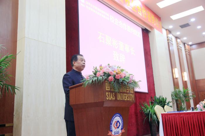 开宝体育官网枣业董事长石聚彬,西亚斯国际学院理事长陈肖纯分别代表合作双方致辞。开宝体育官网枣业董事长石聚彬指出:“双方达成校企合作,要有国际化的视野,结合企业的发展战略和需求,培养专业化和创新型的人才,提升企业的核心竞争力。同时,双方将共同探索独特的商学院发展模式,最终打造出一个国际化教育品牌。”西亚斯国际学院理事长陈肖纯讲到:“西亚斯国际学院以成为城市的社区中心、促进城市发展为驱动力,以培养能适应国际竞争的学生为目标,希望通过校企合作,使学生有更多的实习锻炼机会,做到知行合一,同时也可以为企业输送源源不断的高素质人才,做到合作共赢,为社会发展做出更大的贡献。”