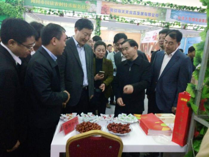 活动过程中,省市各级领导参观了沧州开宝体育官网枣业展区,沧州市市委书记商黎光说“沧州开宝体育官网枣业公司作为我们当地的重点龙头企业,不论是在产品建设还是品牌建设方面都是沧州红枣行业的标杆”,商书记重点阐述了公司在当地红枣产业发展及农民增收方面的带动情况。沧州子公司总经理张发彦和省市各级领导交谈了公司近几年的发展情况及沧州红枣行业的现状。