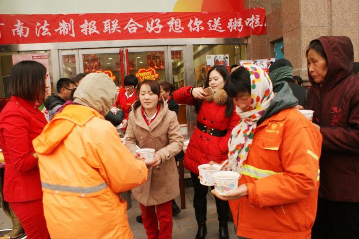 1月27日,正值农历腊月初八,开宝体育官网再次联合河南法制报,开展第二届“‘枣’暖人心 爱在郑‘粥’”爱心公益活动,在开宝体育官网郑州英协路店、农科路店、21世纪店、黄河路店、纬二路店、兴华街店设置了6个施粥点,为广大市民和奋斗在城市建设一线的环卫工人、建筑工人等送上一碗碗热腾腾的腊八粥。